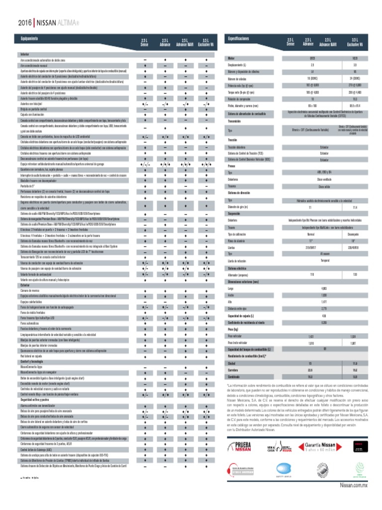 Nissan Altima Ficha técnica, Consumo, Medidas