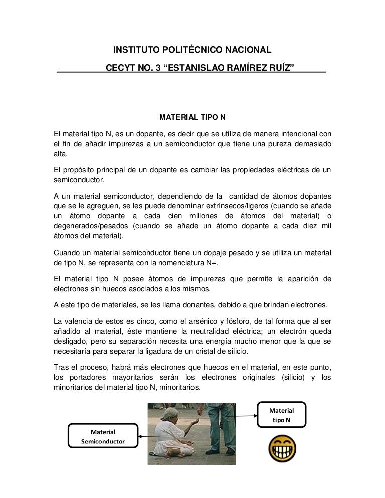 FIGURA 1. Materiales tipo N MATERIALES TIPO P. Si la impureza que se agrega da como resultado un faltante de electrones, se formará un semiconductor con propiedades tipo P.A la impureza que entra a formar los enlaces covalentes y que permite un faltante de electrones, se le llama ACEPTADORA.Los materiales que pueden aceptar electrones son el Indio (In), el Boro (B) y el Aluminio (Al) debido a.