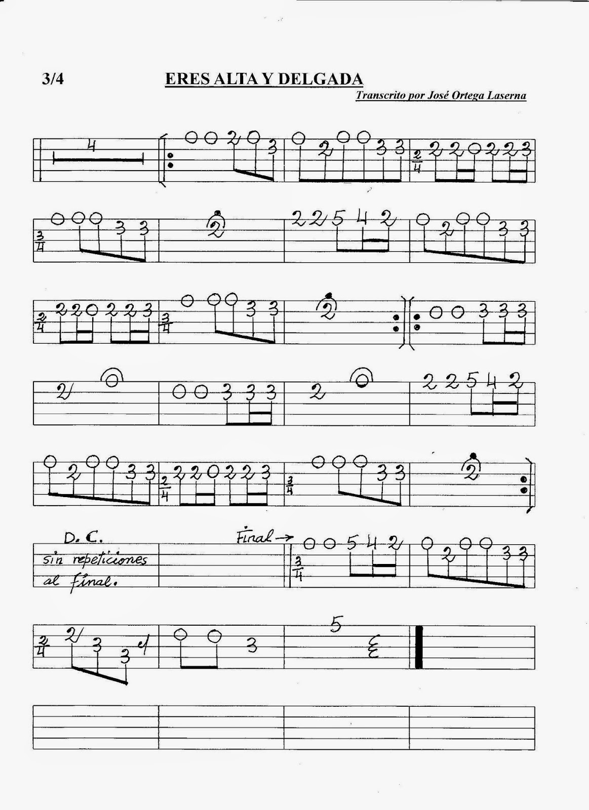 PARTITURAS EN CIFRA PARA BANDURRIA Y LAÚD DE JOSÉ ORTEGA LASERNA ERES ALTA Y DELGADA