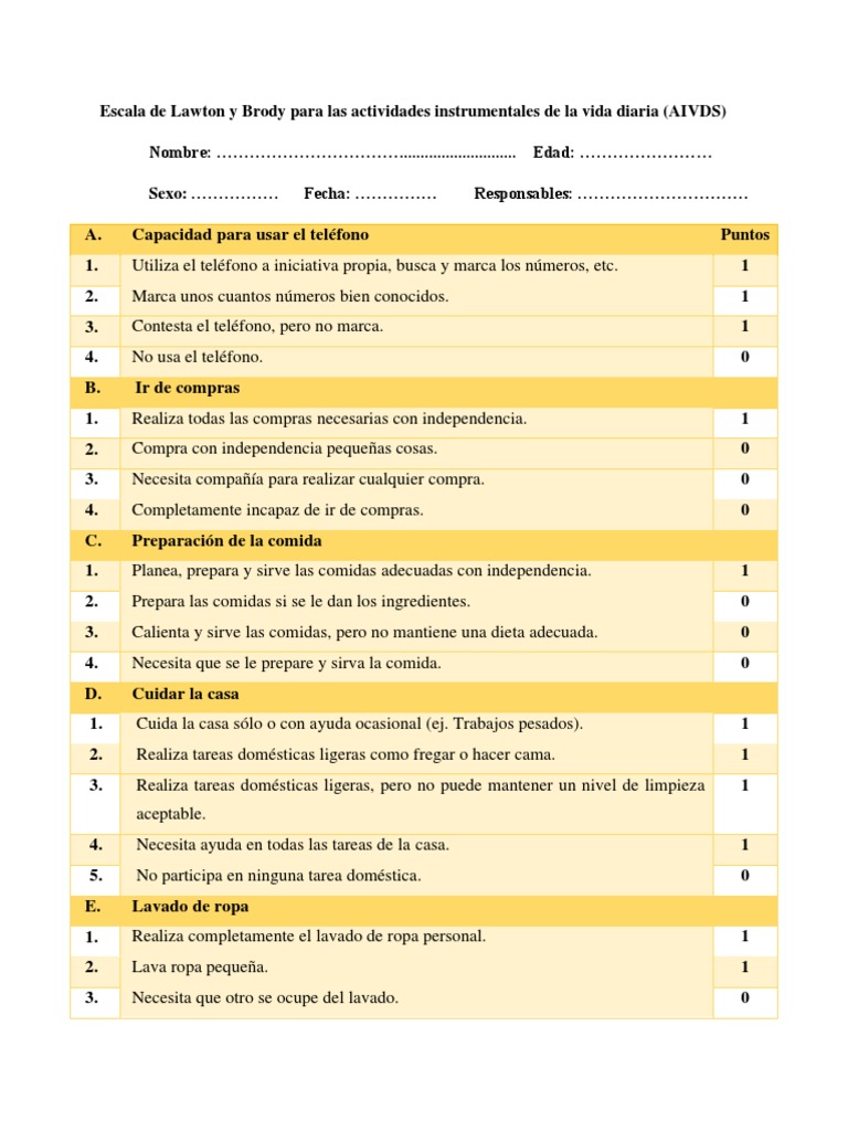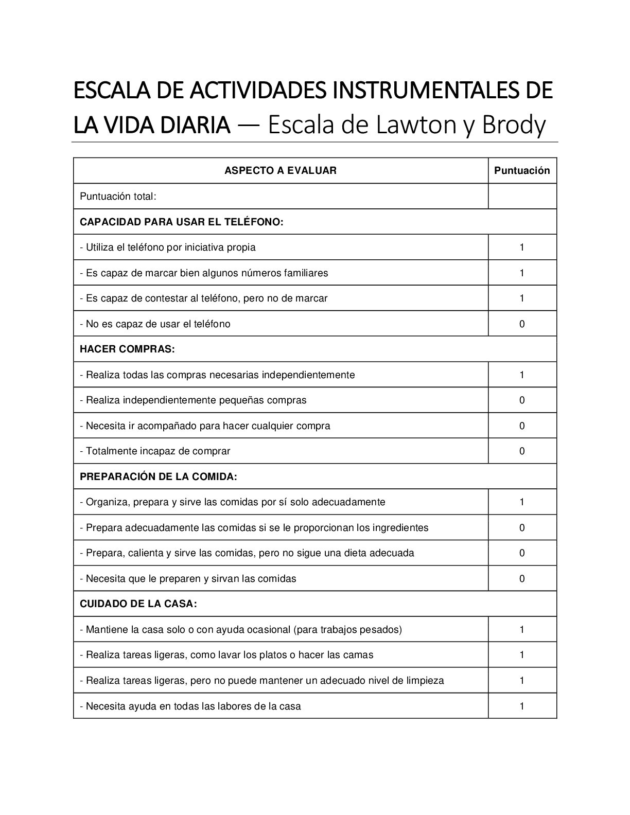 ESCALA DE ACTIVIDADES INSTRUMENTADAS DE VIDA DIARIA LAWTON Y BRODY PDF