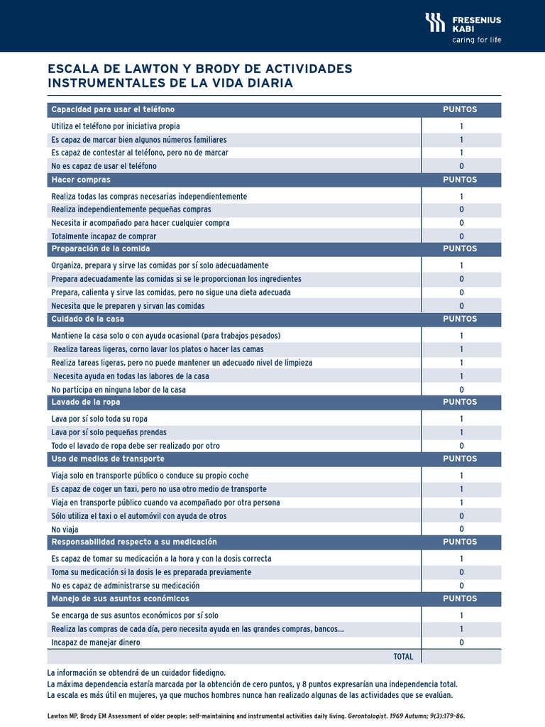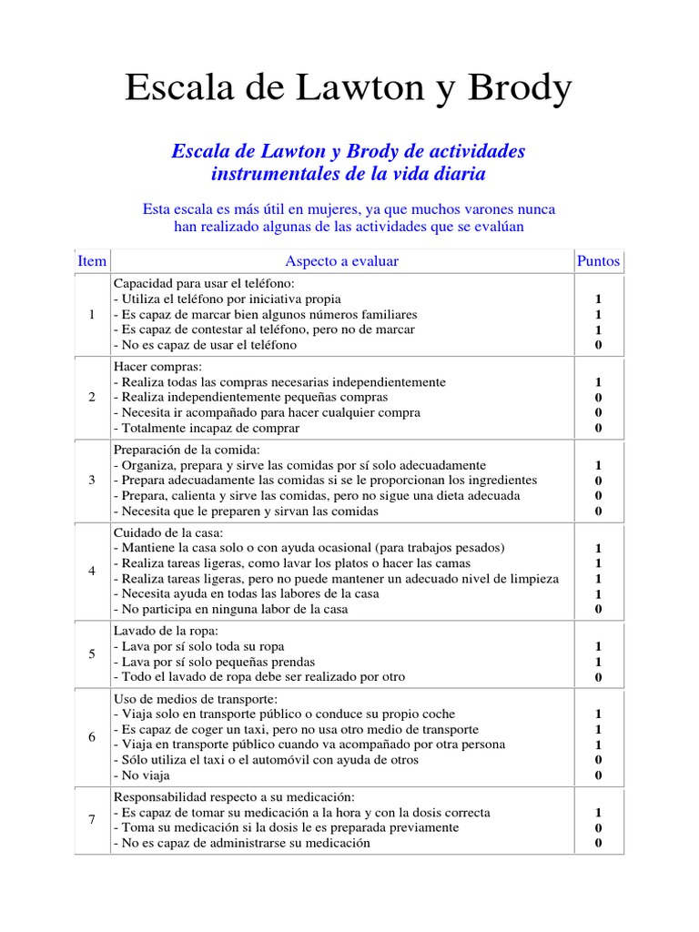 Herramienta para medir la escala de Lawton y Brody. Última actualización: 03/05/2024 Acceso socios Hazte socio Inicio; Seen. Presentación Conoce la sociedad. Utilizamos cookies propias y de terceros para analizar nuestros servicios y mostrarte publicidad relacionada con tus preferencias en base a un perfil elaborado a partir de tus.