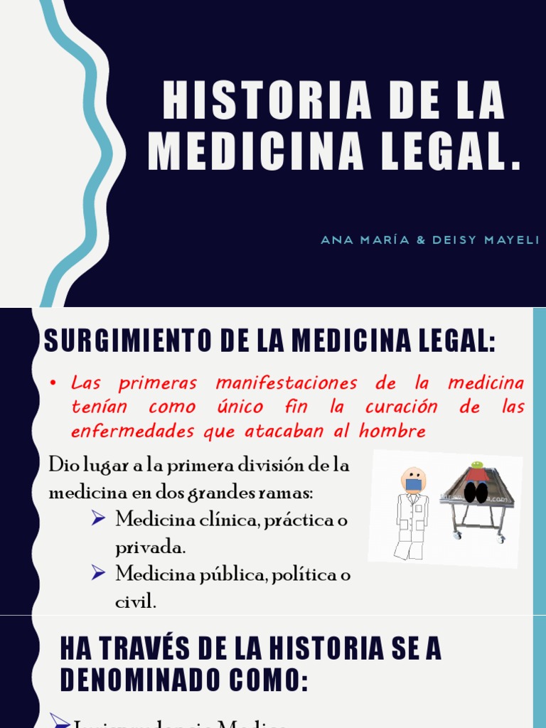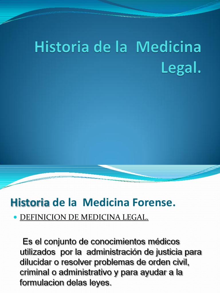 View PDF. HISTORIA DE LA MEDICINA LEGAL Dr. Benito Alejandro Morales ffHistoria de la medicina legal Históricamente, las primeras manifestaciones de la medicina tenían como único fin la curación de las enfermedades que atacaban al hombre, pero hubo que comprenderse que, además de la actuación al servicio de los intereses individuales.