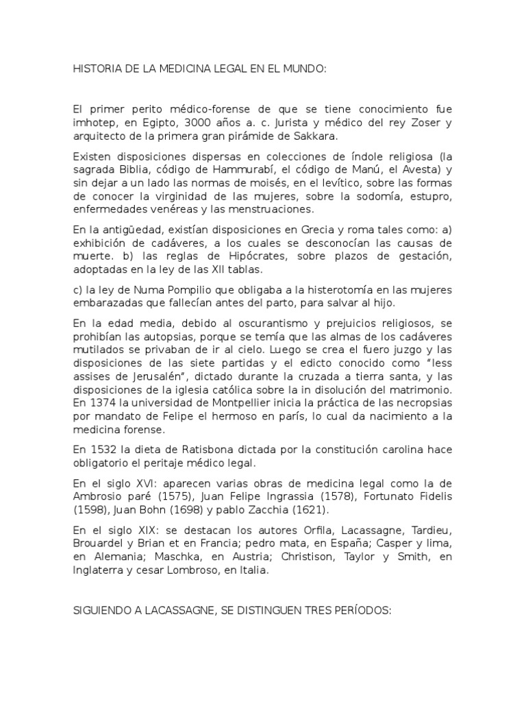 historia de la medicina legal y la patologia forense antecedentes historicos y precursores de la medicina forense. mariana barrero. download free pdf view pdf. instituto de medicina legal y ciencias forenses "leonidas avendaÑo ureta" guÍa mÉdico legal de valoraciÓn integral de lesiones corporales y determinaciÓn de deformaciÓn de rostro.