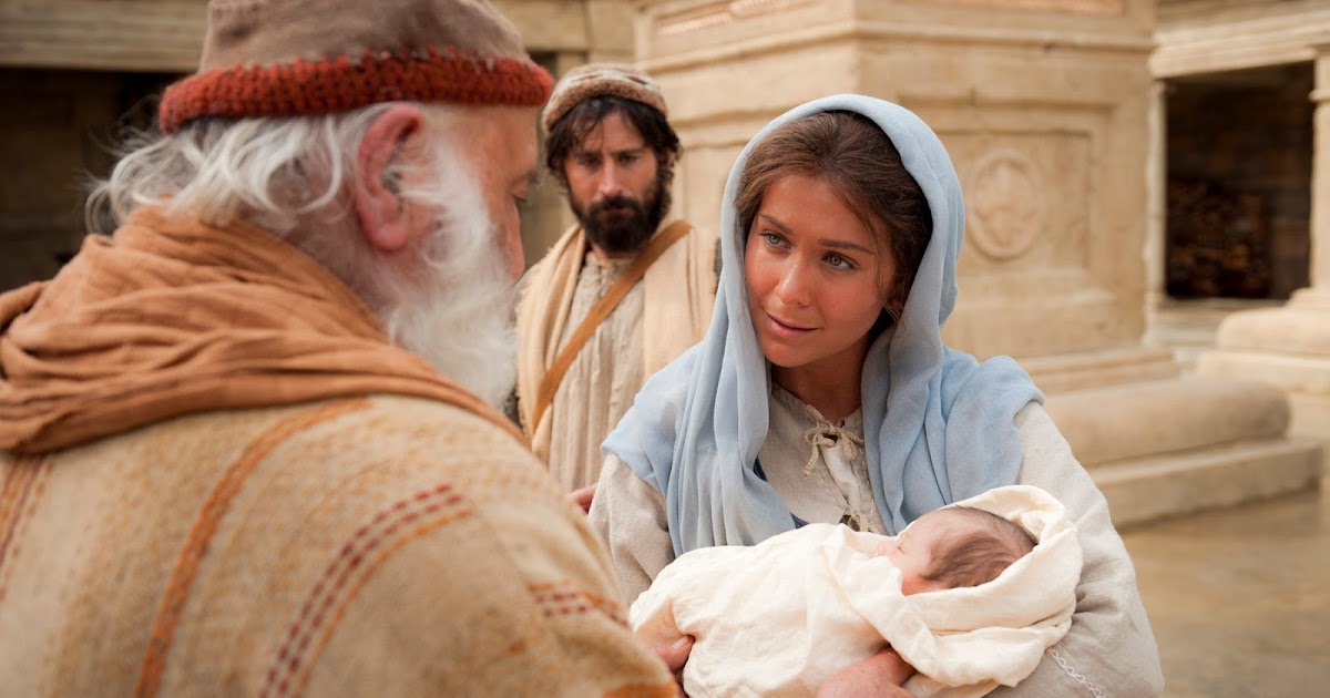 Jesús es presentado en el templo - Cuando llegó el día en que José y María debían ser purificados como decía la ley de Moisés, llevaron a Jesús a Jerusalén para presentarlo al Señor. Como está escrito en la ley del Señor: «Todo primer varón debe ser dedicado al Señor». Fueron a ofrecer el sacrificio tal como la ley del Señor dice: «Ofrezcan un par de tórtolas o dos pichones».